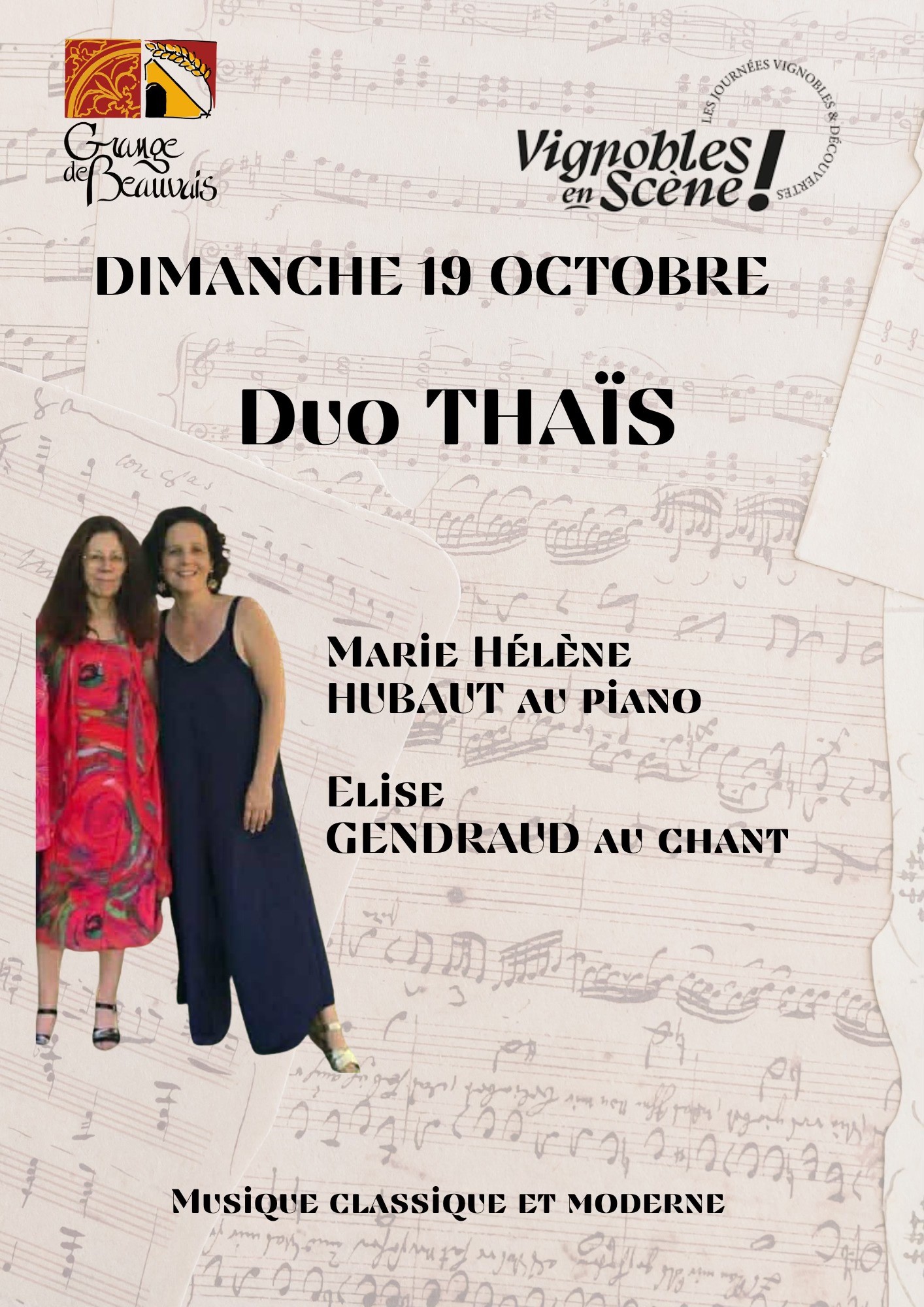 Puis, à 13h00, Partagez un repas gastronomique, convivial sous la halle ouverte entracte musical avec le duo THAÏS. (voir menu ci-après)